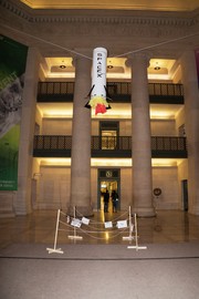 A SpaceX-themed hack appeared in Lobby 7 Sunday morning commemorating the spaceflight company’s recently completed JASON-3 mission.