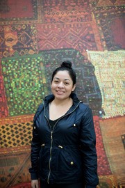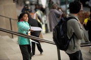 A young girl passes out papers about Aafia Siddiqui, an MIT alumna currently serving an 86-year sentence in Forth Worth, Texas, during a rally Siddiqui’s release held Tuesday on the steps outside of 77 Mass Ave.