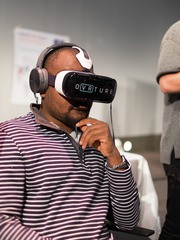 Visitors to the VR@MIT event were able to interact with Oculus Rift, HTC Vive and Gear VR headsets in the Media Lab.