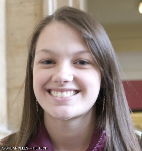 Laura E. Aust ’10 and S. Balaji Mani ’10, members of the 2010 Ring Committee, present the bezel for the 2010 Brass Rat in superhero costumes during Ring Premiere held last night in Kresge Auditorium.