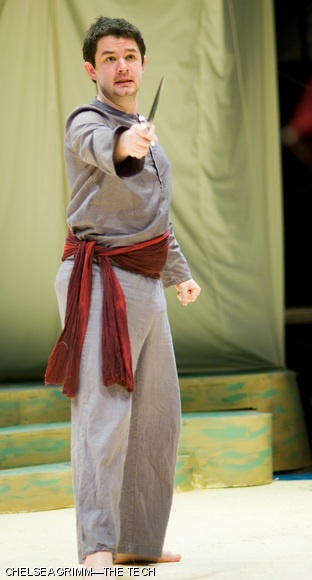 Kellas R. Cameron ’10 brandishes a dagger as the character Leonine in the dress rehearsal of MIT Shakespeare Ensemble’s presentation of Pericles, playing this weekend and next in La Sala de Puerto Rico in the Stratton Student Center.