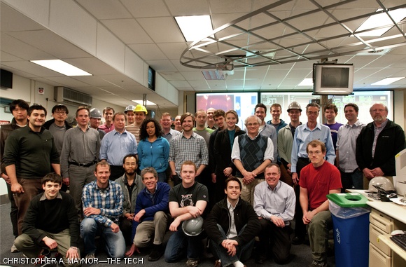 Several of the scientists and engineers who help operate Alcator C-Mod pose for a photograph in the main control room.
