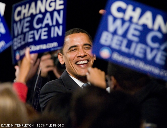 President Barack Obama will be speaking about clean energy at Kresge Auditorium on Friday. Obama is seen here at a campaign stop in Boston in February 2008.