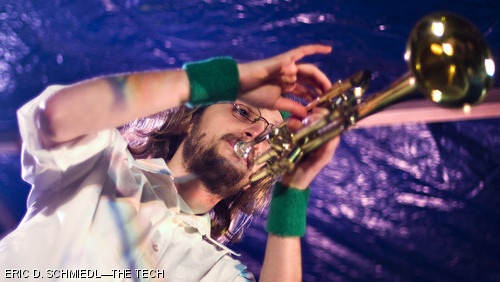 Trumpeter Martin W. Skelton ’08 of Supa Dupa plays at the WMBR and EC ConcertComm joint production Fred Fest ’08 in the East Campus courtyard on Saturday evening.