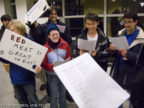 MITbeef went “beef caroling” around campus on the evening of December 16, singing beef-flavored versions of well-known carols and handing out beef jerky to passersby.