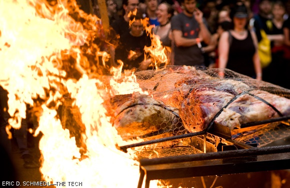 Flames emerging from the steer-roasting pit mark the beginning of Steer Roast on May 1 hosted by MIT’s Senior House.