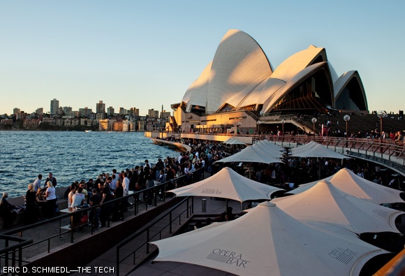The Sydney Opera House, one of the world’s most famous examples of modernist architecture, is seen on an Australian winter evening.