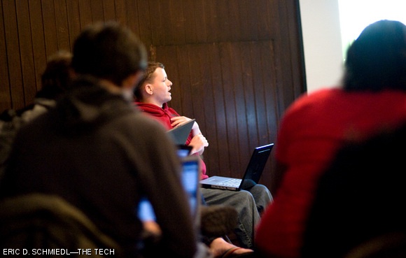 Paul Baranay ’11 participates in a meeting on Sunday in Burton-Conner’s Porter Room to discuss the leaked consultants’ report on dining. The meeting was hosted by the Campaign for Students.