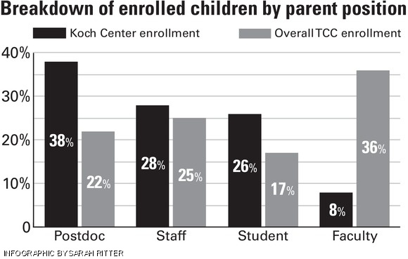 Comparison of MIT daycare center prices. Eastgate, Stata and Lincoln all offer five, three, and two day options, while Westgate only offers five day options for child care.
