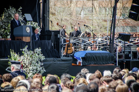 Vice President Joe Biden spoke at the memorial service on Wednesday. Other notable guest included Massachusetts Governor Deval Patrick, singer-songwriter James Taylor, and Massachusetts Senator Elizabeth Warren.