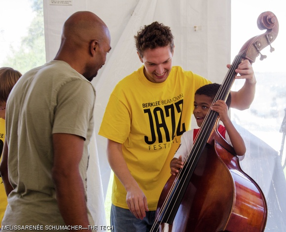 Children and adults played with musical instruments at the Instrument Petting Zoo during the Berklee BeanTown Jazz Festival held in Boston this past Saturday.