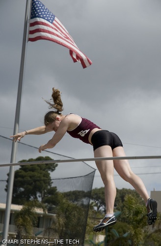 Karin E. Fisher ’11 clears the bar in the pole vault. The MIT men’s and women’s track and field teams spent Spring Break training in Claremont, California, and capped off the week with a meet held in San Diego by Point Loma Nazarene University.