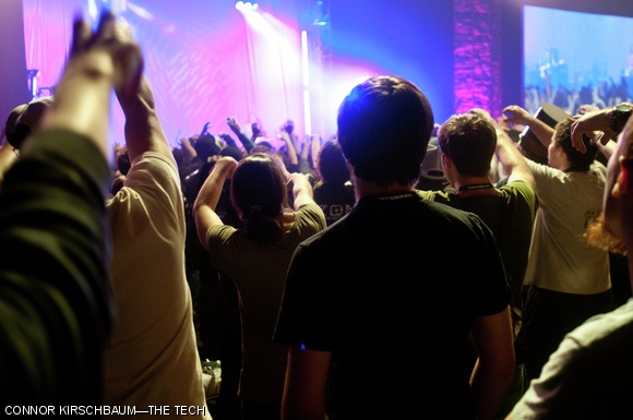 The audience at a PAX concert enters zombie mode, per Jonathan Coulton’s request for the song “Re: Your Brains.”